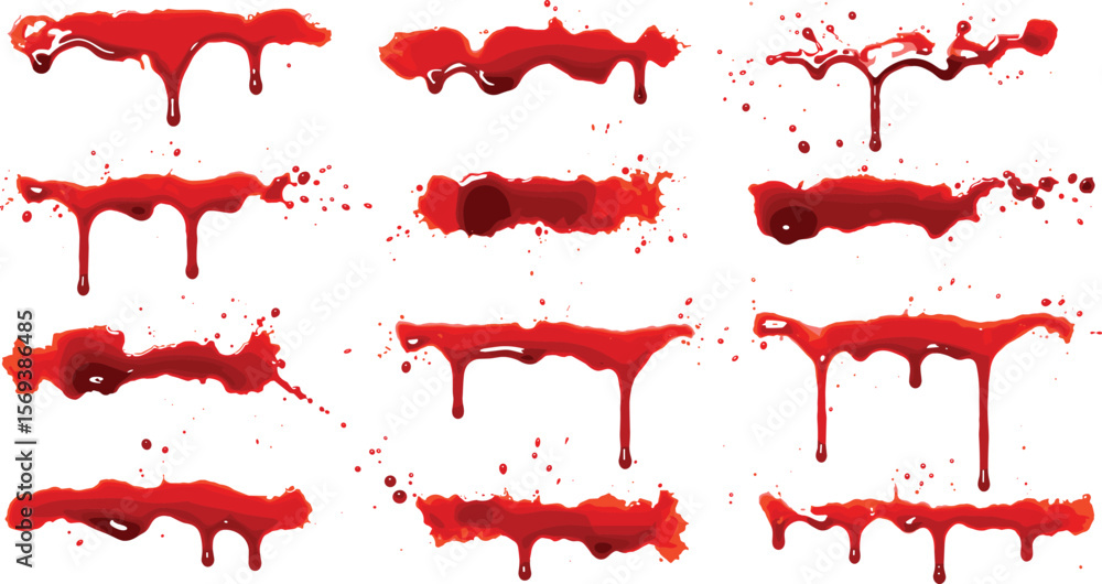 Tableau sur toile Blood splatter vector set, red liquid drips, horror stains, realistic blood drop