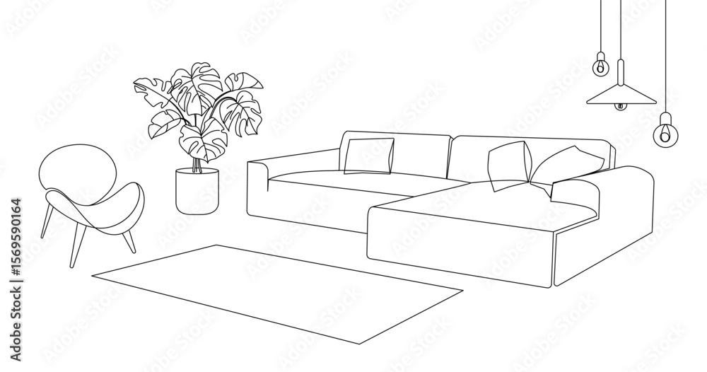 Tableau sur toile Minimalist Living Room Line Art with Sofa and Plants