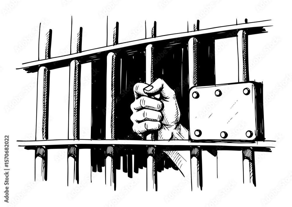 Tableau sur toile hand gripping prison cell bars sketch vector
