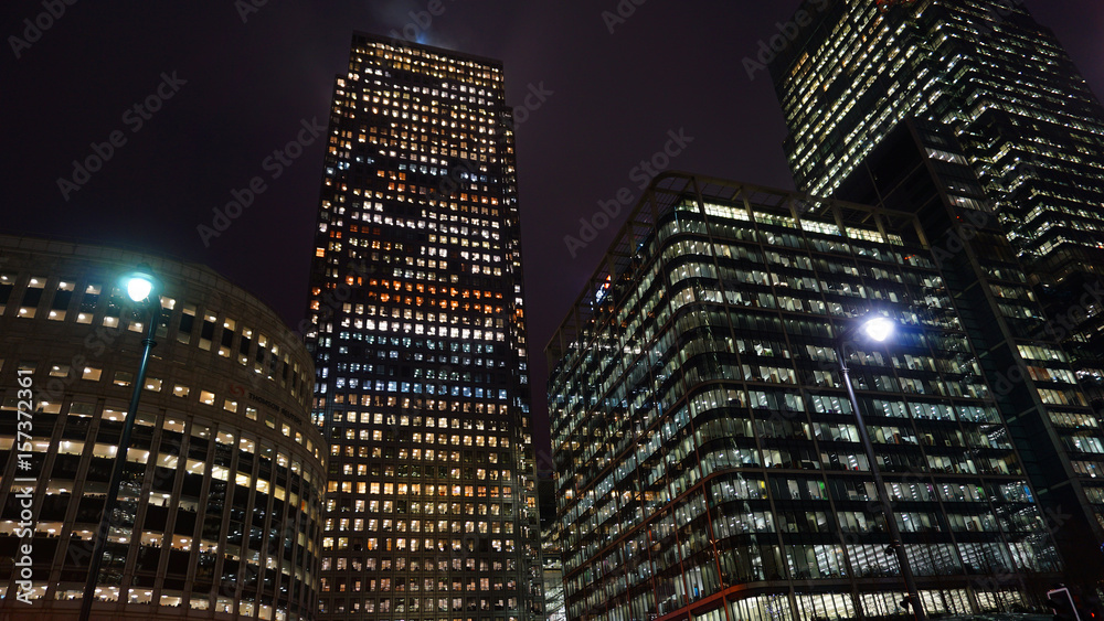Tableau sur toile Night shot of Canary Warf, London, United Kingdom