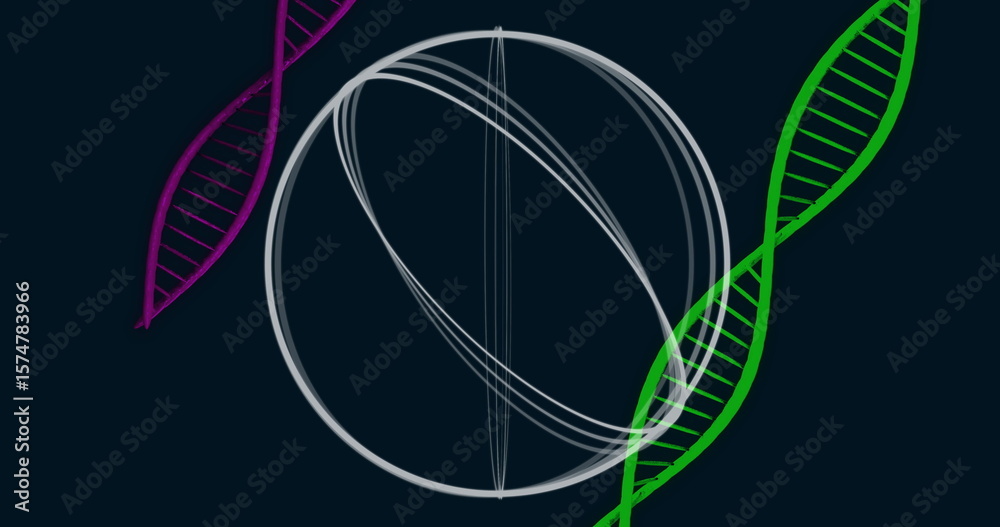 Tableau sur toile Floating grey wireframe sphere rotating in dark illustration, with magenta and g