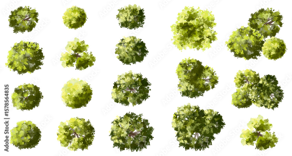 Tableau sur toile Vector watercolor green tree or forest top view isolated on white background for