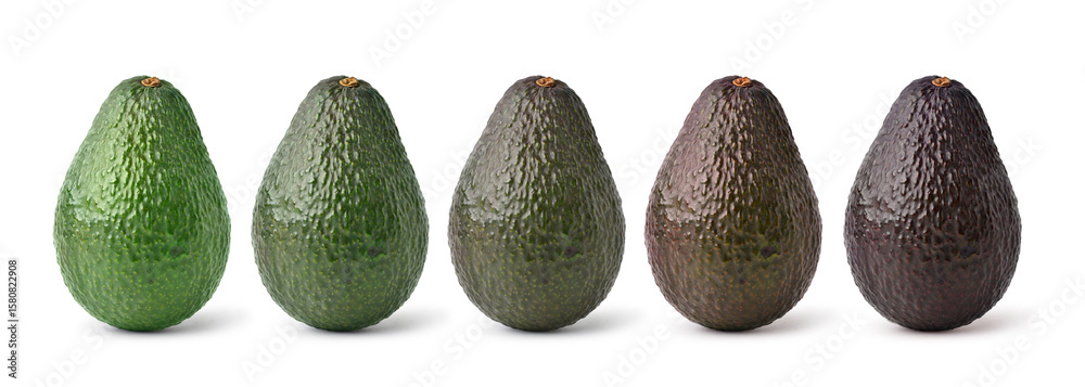 Tableau sur toile Stages of avocado ripeness isolated on white background.