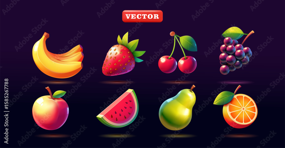 Tableau sur toile Fruit slot machine featuring bananas, strawberries, cherries, grapes, peaches, watermelons, pears, and oranges