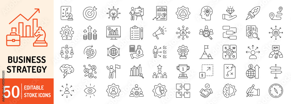 Tableau sur toile Business Strategy collections editable stroke outline web icons set