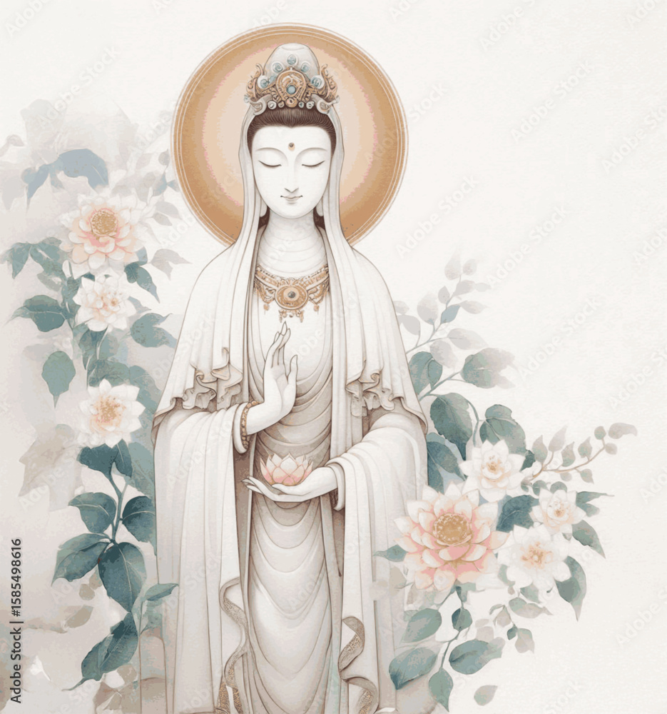 Tableau sur toile Compassion in Fluid Light Bodhisattva Guanyin isolated watercolor vector illustr