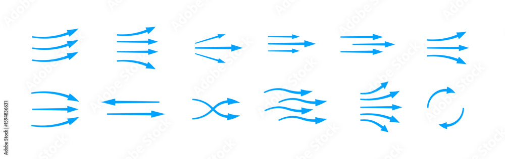 Tableau sur toile Blue arrows displaying diverse flows, symbolizing motion and air movement