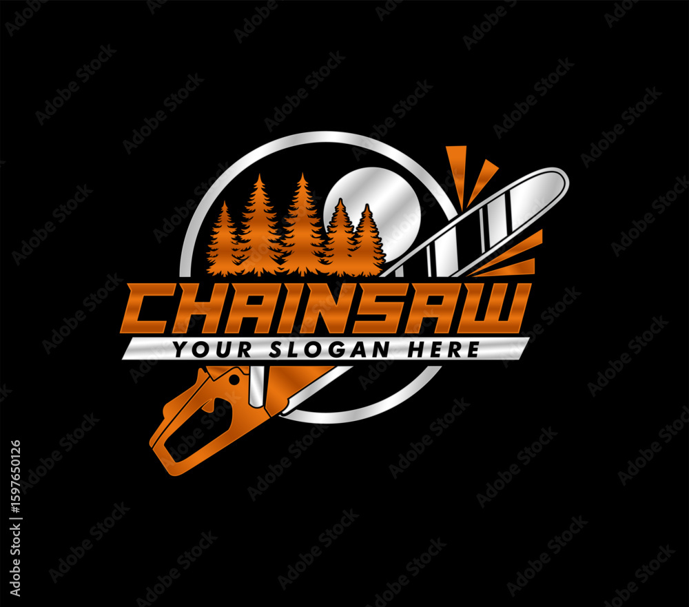 Tableau sur toile chainsaw logo timbering lumberjack vector illustration
