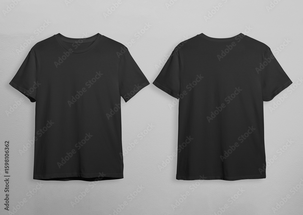 Tableau sur toile Basic Black Tee: The image presents a front and back view of a plain black t-shirt