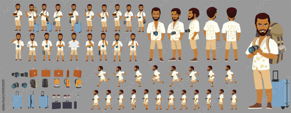 Tableau sur toile Traveler character model sheet, Character poses, expressions, Walk cycle, Run cycle animated character sequences