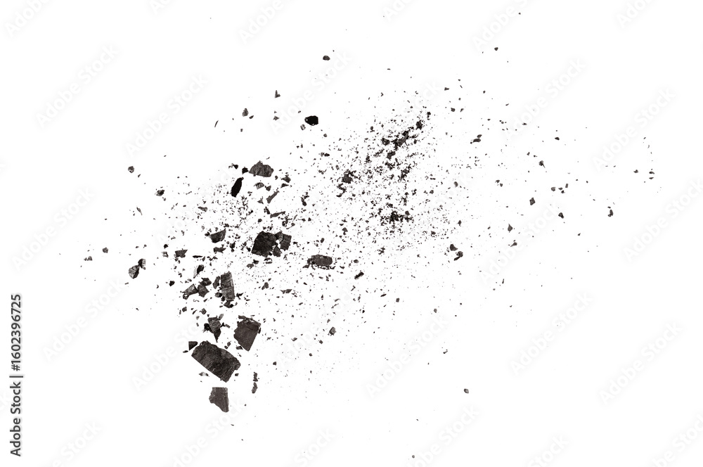 Tableau sur toile Scattered charcoal dust and broken, isolated texture
