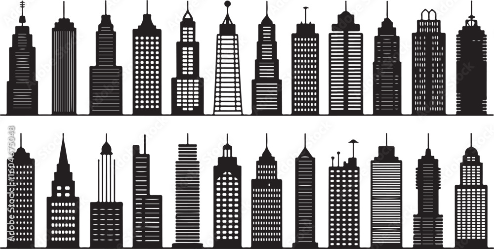 Tableau sur toile Black skyscraper silhouettes skyscrapers buildings
