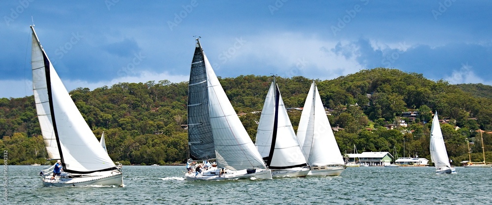 Tableau sur toile Five monohull sailing yachts racing on Brisbane Water.
