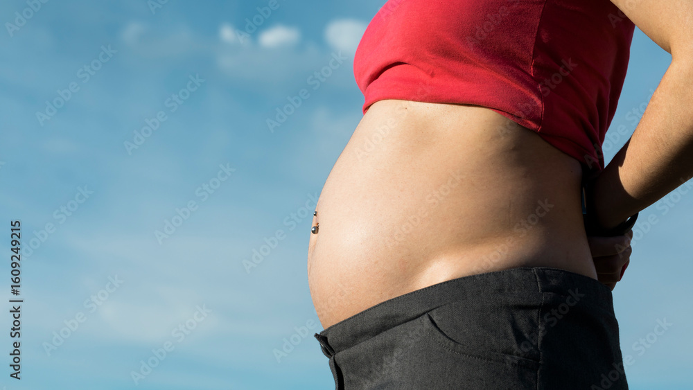 Tableau sur toile Pregnant woman outdoors touching belly in nature