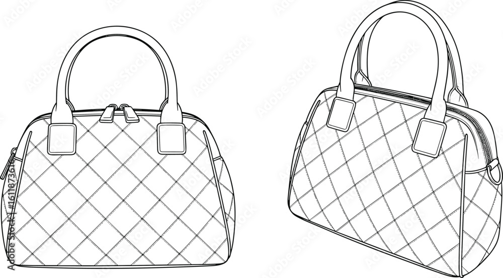 Tableau sur toile Quilted leather handbag technical sketch, luxury purse cad drawing, fashion acce