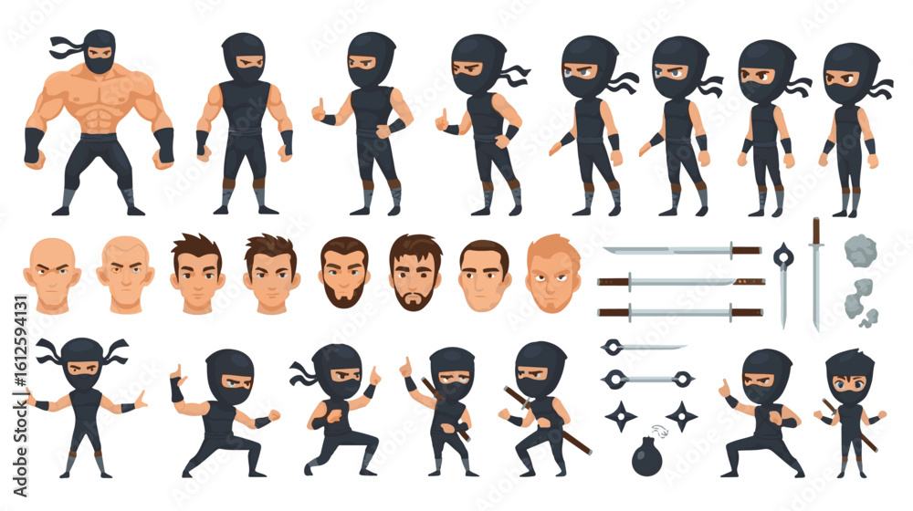Tableau sur toile Cartoon Ninja Character Design Kit