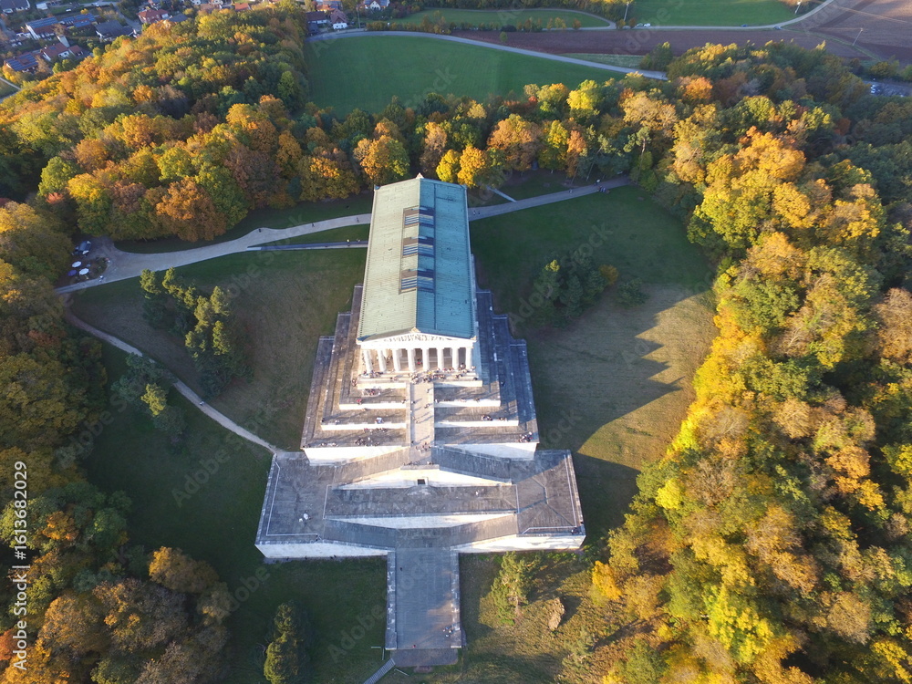 Tableau sur toile Walhalla Regensburg in autumn evening drone shot