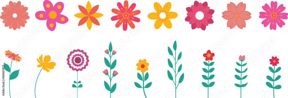 Tableau sur toile Set of cute flowers with branches and leaf's naturals