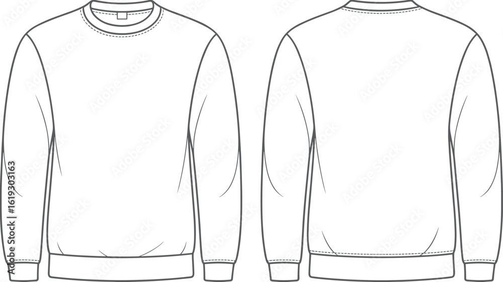 Tableau sur toile Crew neck sweatshirt fashion flat sketch, vector template, front and back view,