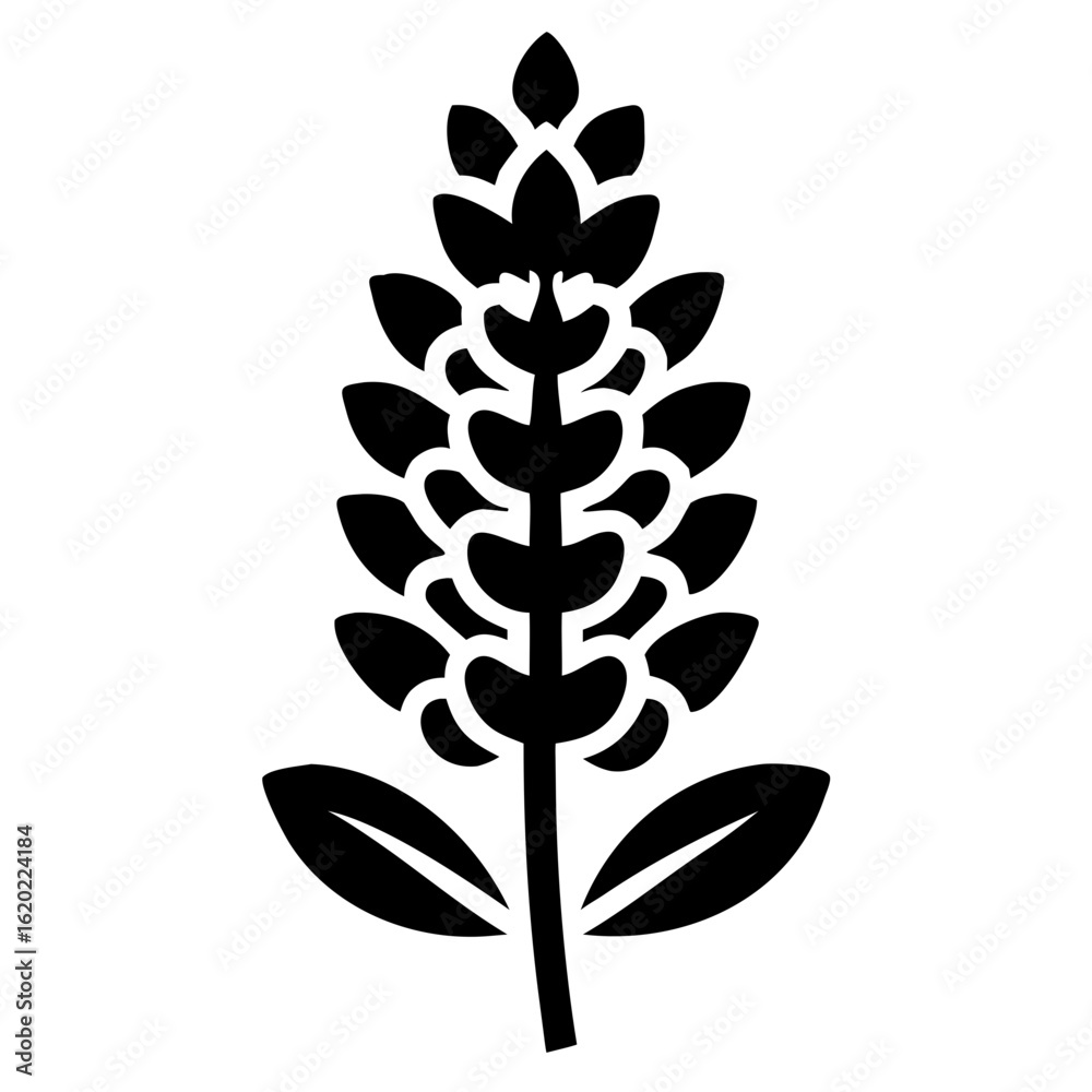 Tableau sur toile Elegant black silhouette of a lupine flower in full bloom on white