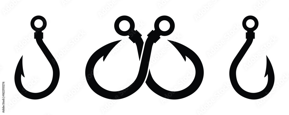 Tableau sur toile Fishing Hook Vector Set – Illustrated Knots and Tackle Icons for Outdoor, Angling, and Nautical Designs