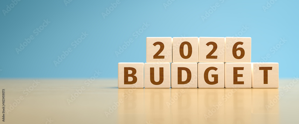 Tableau sur toile Wooden toy cubes forming the text 2026 BUDGET