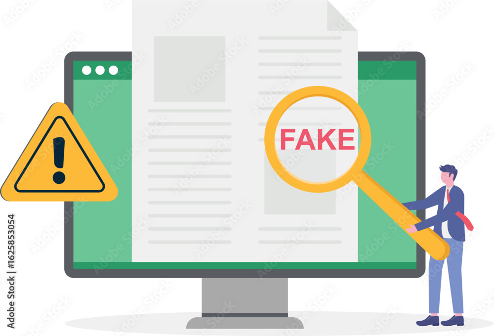 Tableau sur toile Flat illustration of man use magnifying glass to investigate social media fake n
