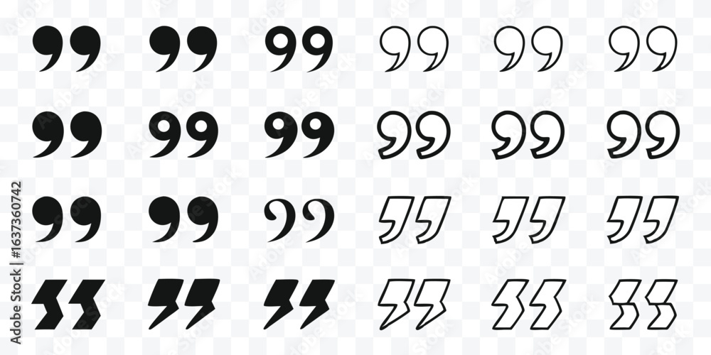Tableau sur toile Collection of Quotation Mark Vector Icons Emphasizing Text and Speech Various St