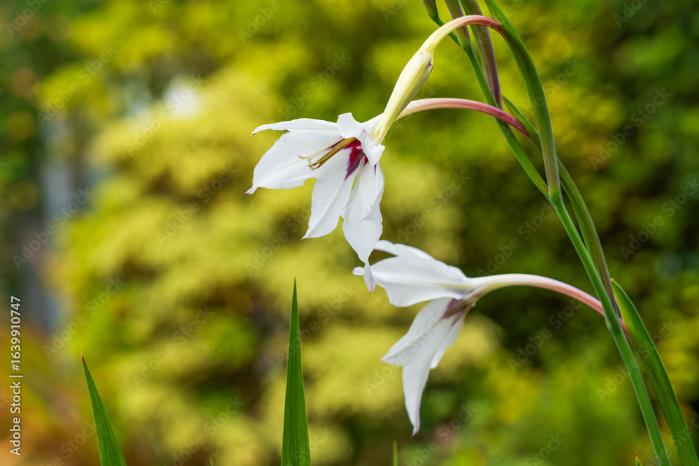 Tableau sur toile White Gladiolus Murielae flower blooming in the garden, a native species of East