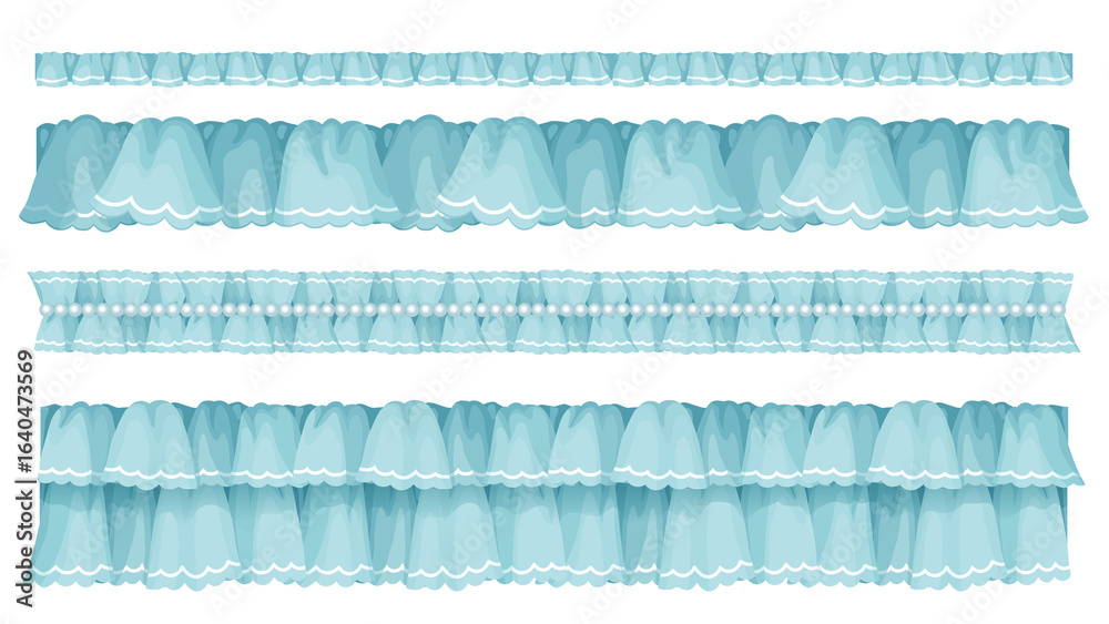 Tableau sur toile Elegant Ruffle and Pearl Lace Borders – Romantic blue Fabric Trim Collection PNG