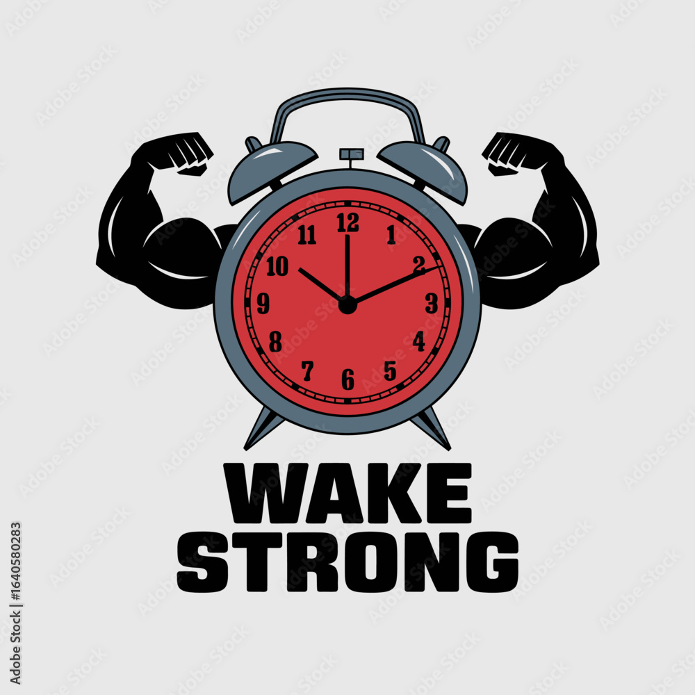 Tableau sur toile Alarm clock with muscular arms flexing representing strength and motivation to w