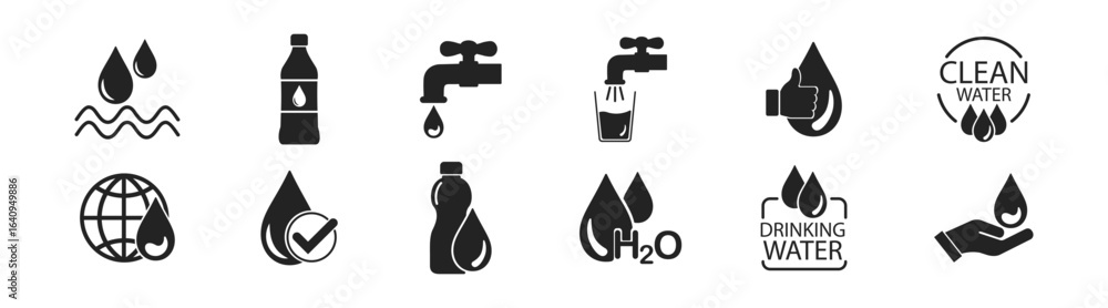 Tableau sur toile Set of eco-friendly water icons: pure drinking, liquid, faucet, hygiene, vector symbols, wellness, cycle, refill, health, and more, on transparent background