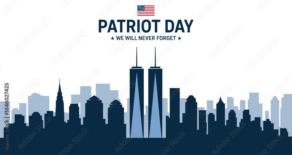 Tableau sur toile 9/11 Patriot Day tribute with Twin Towers skyline, American flag, and memorial t