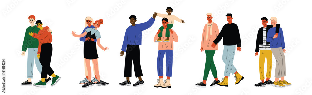 Tableau sur toile LGBT Couples with Man and Woman Romantic Gay Pair Vector Set