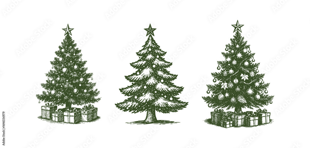 Tableau sur toile Christmas Tree With Star And Presents Holiday Card Vintage Vector Set