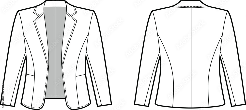 Tableau sur toile Women’s tailored blazer front and back view, vector flat sketch, fashion cad dra