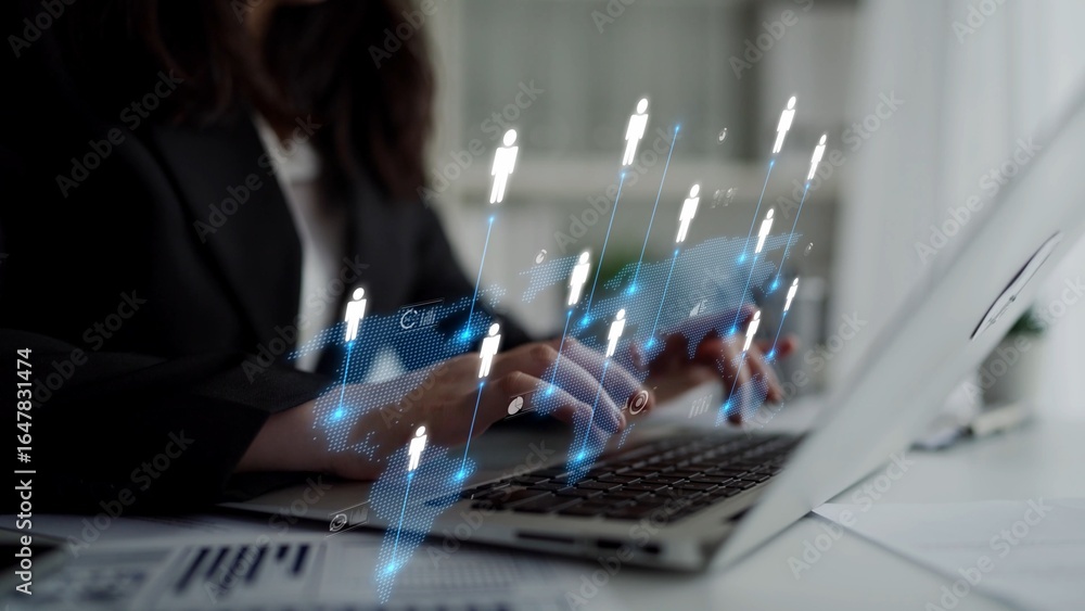 Tableau sur toile People networking, business connections, digital networking platforms, professional collaboration, and expanding opportunities through business relationship building and engagement