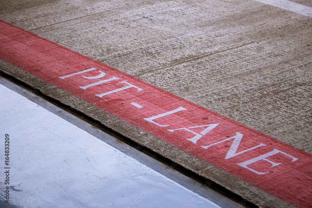 Tableau sur toile Word Pit Lane panted on the ground at the Silverstone racetrack in the UK