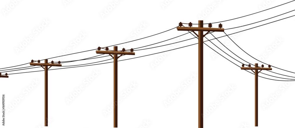Tableau sur toile Wooden utility poles with multiple power lines, electrical transmission system,