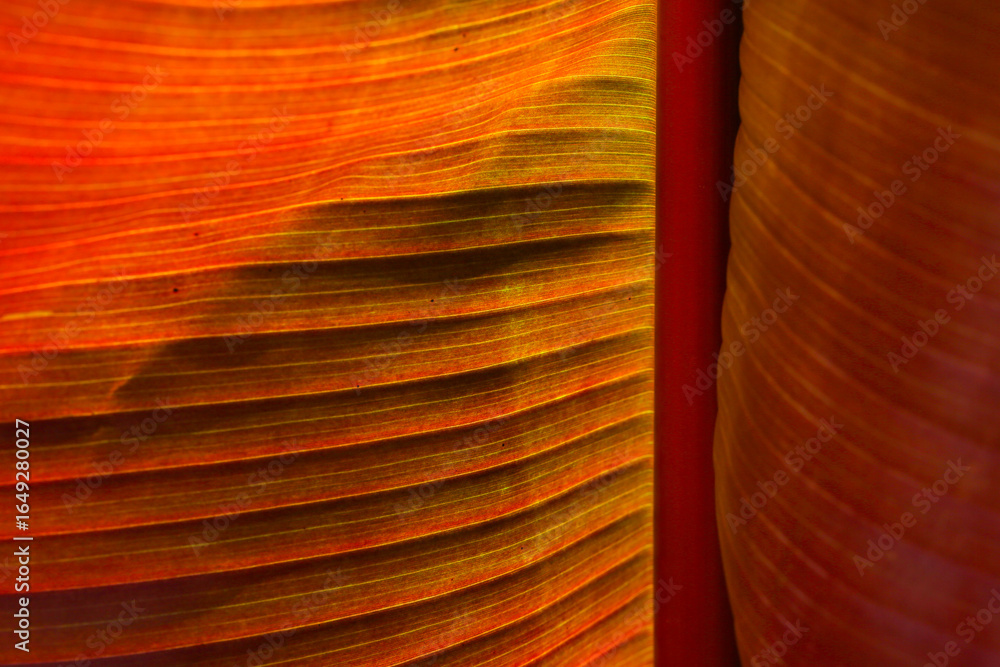 Tableau sur toile Backside of a banana leaf in vibrant light
