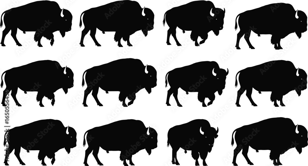 Tableau sur toile Buffalo silhouette collection, isolated bison clipart, black animal outlines for