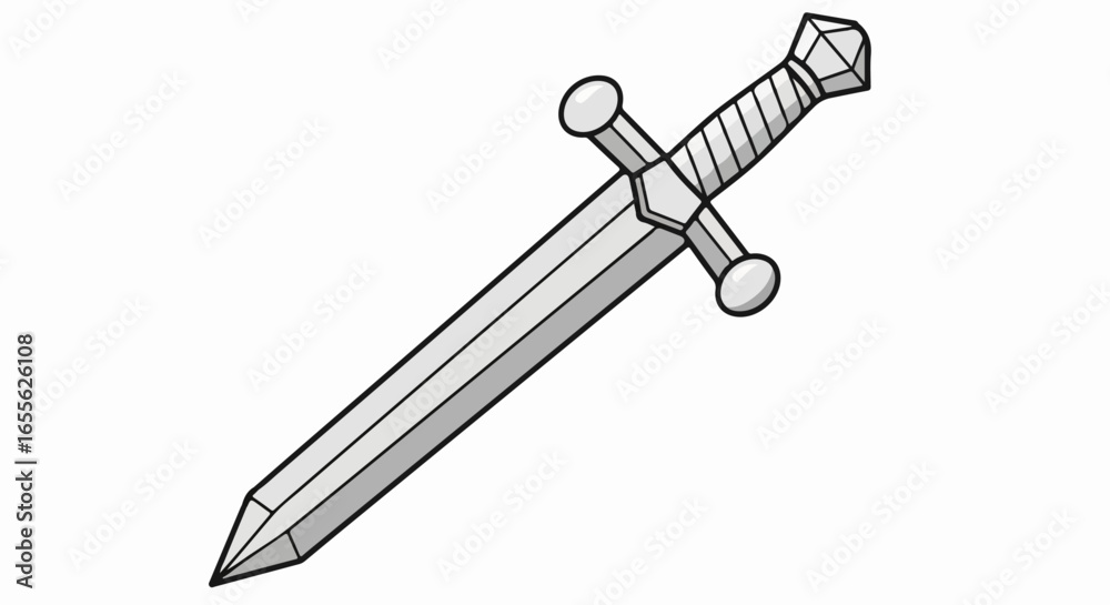 Tableau sur toile A simple black and white line art illustration of a medieval shortsword with a crossguard and pommel