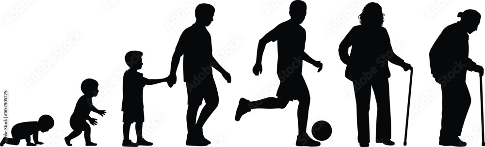 Tableau sur toile Human, life, stages, silhouette, age, evolution, growth, aging, childhood, adult