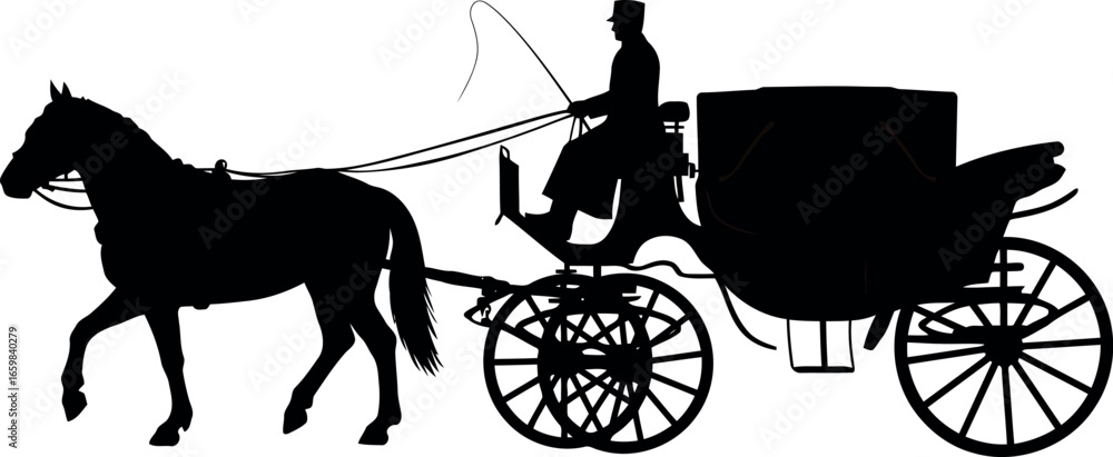 Tableau sur toile Elegant horse drawn carriage silhouette design symbolizing vintage travel and ti
