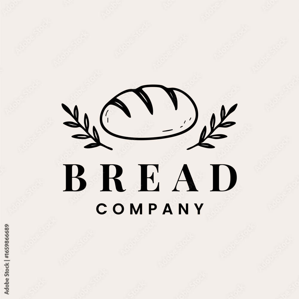 Tableau sur toile Minimalist bread company logo featuring a loaf of bread with decorative leaves