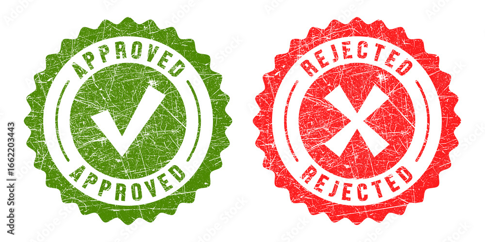 Tableau sur toile Green approved and red rejected rubber stamp seals isolated on transparent backg