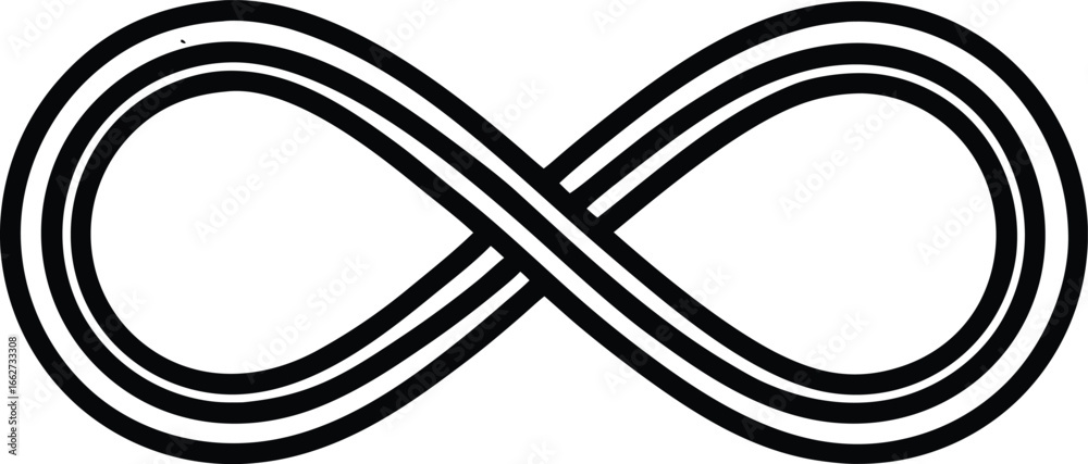 Tableau sur toile Infinite Loop: A minimalist, graphic depiction of the infinity symbol, a timeless emblem of limitlessness and endless possibility, rendered in a stark and bold monochrome palette