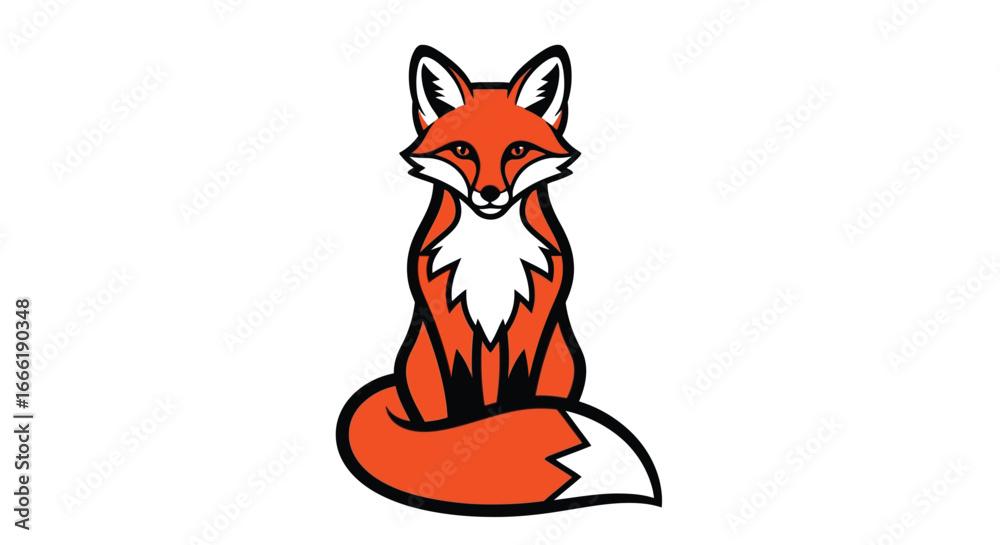 Tableau sur toile Illustration of a sitting fox with a bushy tail, alert ears, and intelligent eye