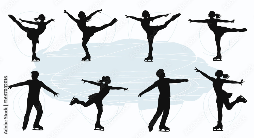 Tableau sur toile Graceful figure skaters performing dynamic moves on a beautifully lit ice rink, capturing winter elegance