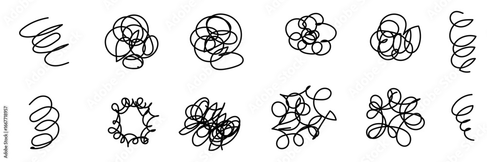 Tableau sur toile モヤモヤしている手書きアイコンセット グルグル・モヤモヤ・悩む・考える・不安〜A set of hand-drawn icons of people feeli